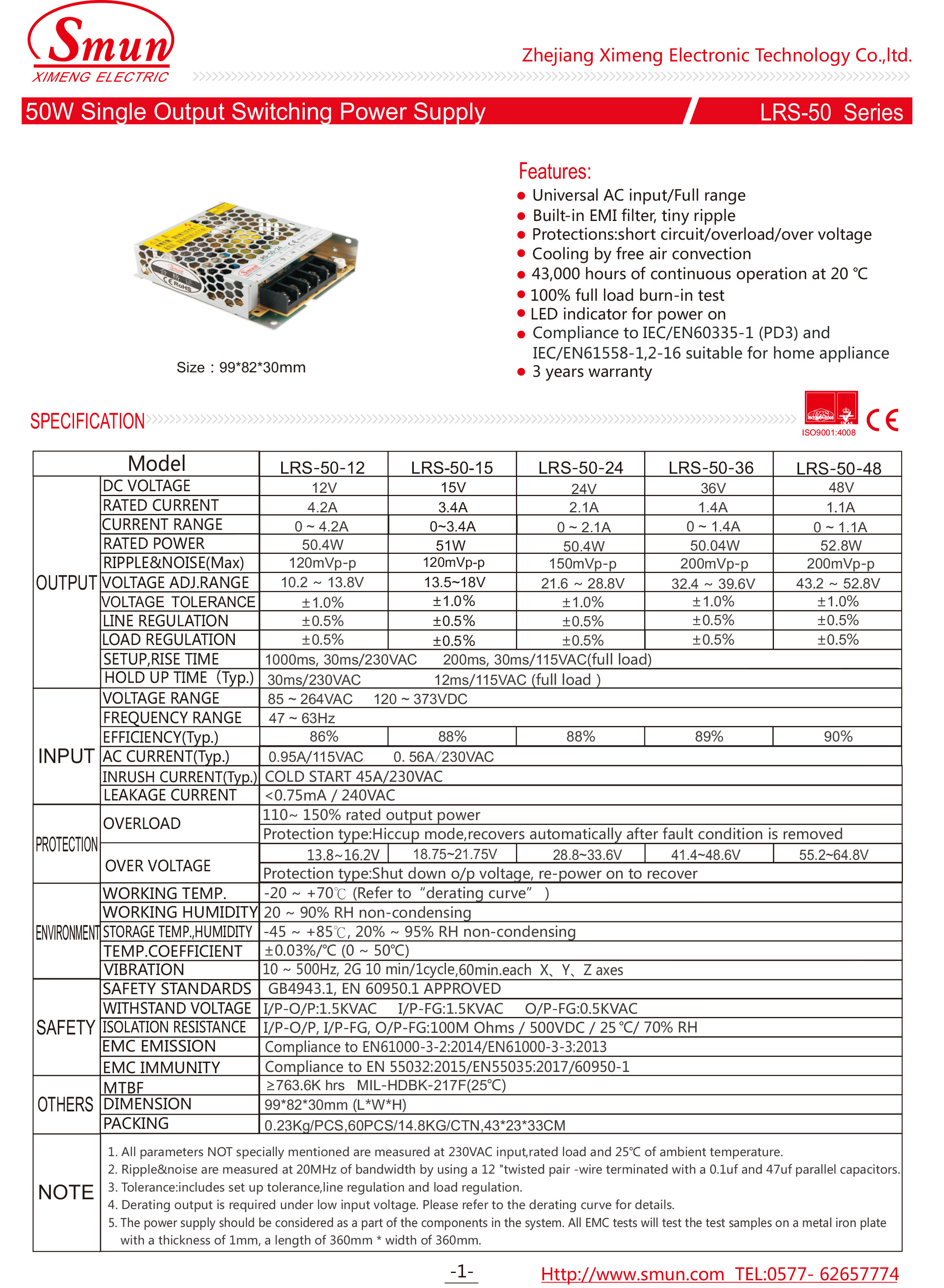 非常に低い無負荷消費電力(0.2W未満)を提供し、エンドシステムが世界のエネルギー要件を簡単に満たすことができます。LRS-50は完全な保護機能と5G防振機能を備えており、国際的な安全性に準拠しています。 TUV EN62368-1、EN60335-1、EN61558-1 / -2-16、UL62368-1、GB4943.LRS-50シリーズなどの規制は、さまざまな産業用アプリケーション向けの高価格で高性能な電源ソリューションとして機能します。